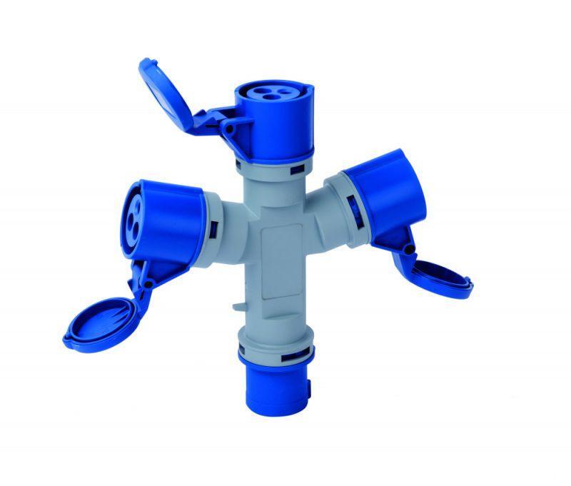 Адаптер трехлучевой серии АП-103 Dekraft, номинальный ток 16 А, диапазон рабочего напряжения 200-250 В AC, степень пыле-влаго защиты IP44, количество полюсов 2Р+РЕ, код CEE 1013. Адаптеры используются для организации временных сетей электроснабжения, и подключения переносных потребителей. Отличительные особенности 2 поколения пром. разъемов: - Новый конструктив устройств - Высококачественная огнестойкий корпус электрических из полиамида - Высокая ударопрочностью, устойчивость к ультрафиолетовому излучению - Контакты выдерживают 50 000 подключений - Защелкивающаяся конструкция вилок и розеток удобна для разборки и сборки