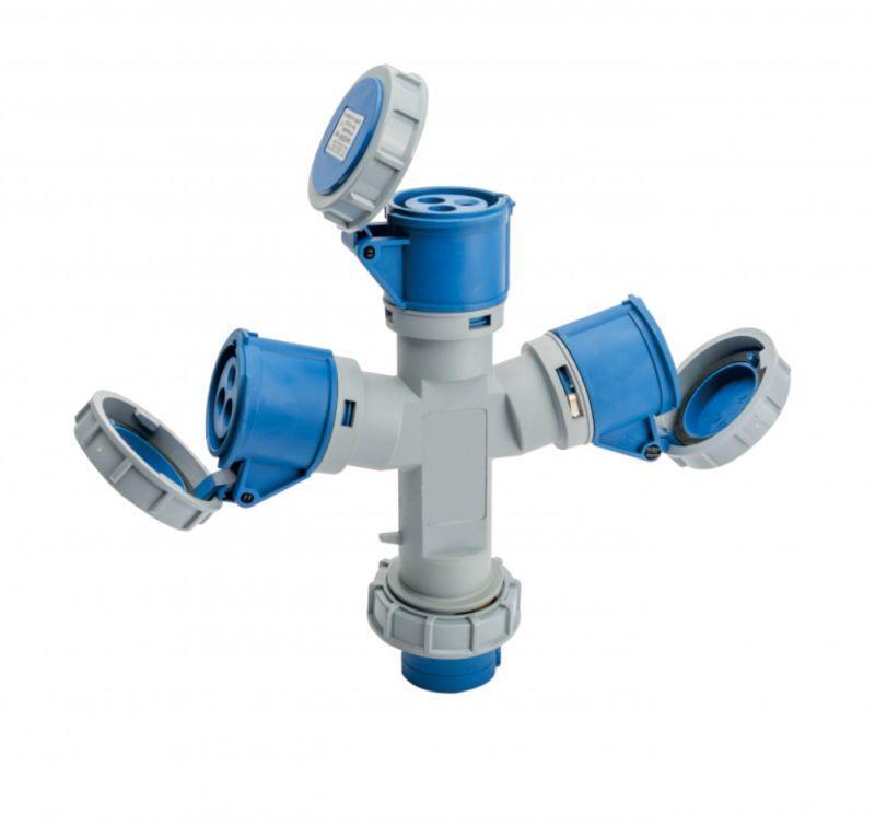 Адаптер трехлучевой серии АП-103 Dekraft, номинальный ток 16 А, диапазон рабочего напряжения 200-250 В AC, степень пыле-влаго защиты IP67, количество полюсов 2Р+РЕ, код CEE 1013W. Адаптеры используются для организации временных сетей электроснабжения, и подключения переносных потребителей. Отличительные особенности 2 поколения пром. разъемов: - Новый конструктив устройств - Высококачественная огнестойкий корпус электрических из полиамида - Высокая ударопрочностью, устойчивость к ультрафиолетовому излучению - Контакты выдерживают 50 000 подключений - Защелкивающаяся конструкция вилок и розеток удобна для разборки и сборки