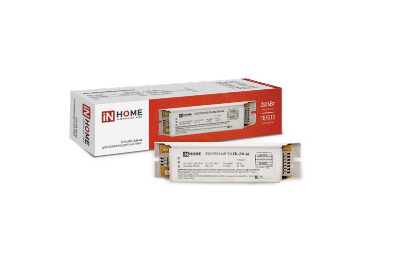 Аппарат пускорегулирующий электронный (ЭПРА) для люминесцентных ламп ETL-236-А2 2х36Вт Т8/G13 IN HOME 4690612032870