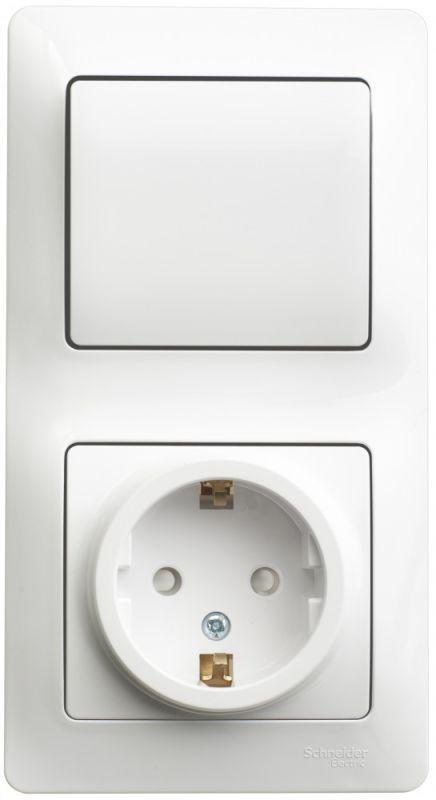 Блок комбинированный Glossa (розетка защ. шторки с заземл.+ 1-кл. выкл.) бел. SE GSL000170