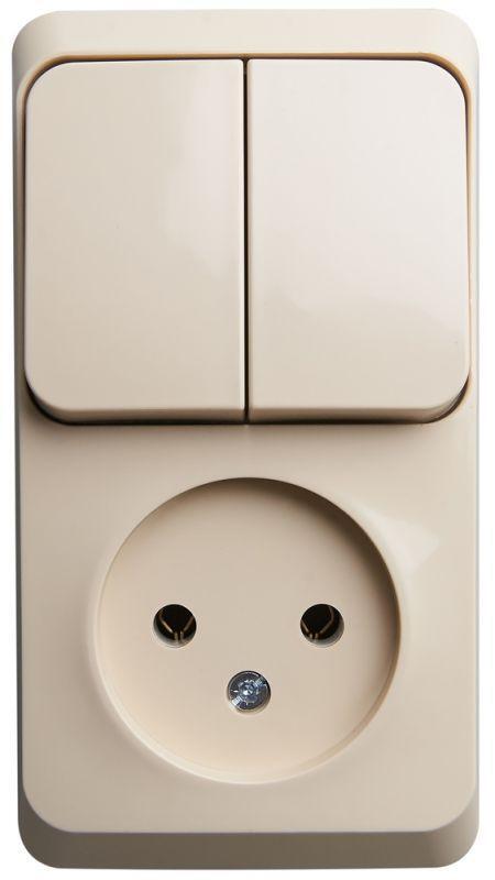 Блок Systeme Electric (ранее Schneider Electric) ЭТЮД (кремовый, открытой установки) предназначен для применения в сетях до 250В, состоит из розетки без заземления, без шторок на 16А и двухклавишного выключателя на 10А. Две клавиши позволяют управлять двумя источниками света с одной точки. Он удобен в применении и отлично подходит для коридора. Сделано в России.