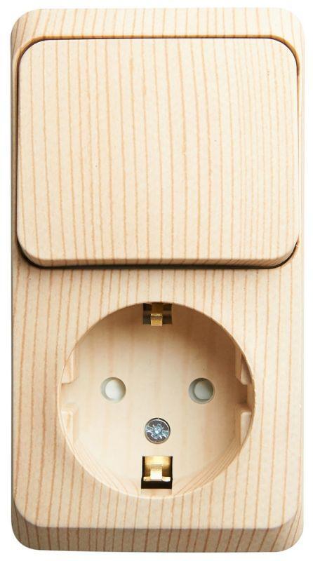 Блок Systeme Electric (ранее Schneider Electric) ЭТЮД (сосна, открытой установки) предназначен для применения в сетях до 250В, состоит из розетки на 16А с заземлением и шторками и одноклавишного выключателя на 10А. Он удобен в применении и отлично подходит для коридора. Заземление обеспечивает безопасность при косвенном прикосновении. Изделия цвета Сосна обладают уникальным рисунком, напоминающим древесный сруб. Сделано в России.