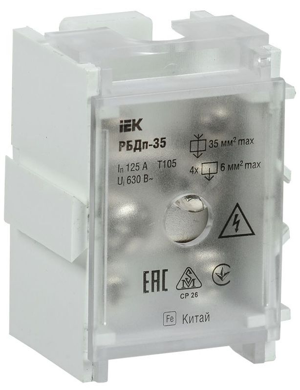 Блок распределительный проходной РБДп-35 125/50А DIN 1х35-4х6кв.мм IEK YRB30-1-125