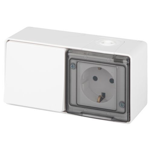 Блок розетка с выключателем влагозащищённый IP55 серии Эра Эксперт открытой установки цвет белый 11-7501-01. Номинальные характеристики 16А 250В. Устройство выполнено из качественного поликарбоната, оснащёно уникальными винтовыми клеммами ЭКСПЕРТ для максимально качественного зажима кабеля в механизме.