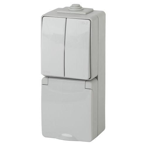 Блок розетка+выкл. ОП Эра Эксперт 11-7608-03 16А(10AX)-250В двойн. верт. IP65 сер. ЭРА Б0035999