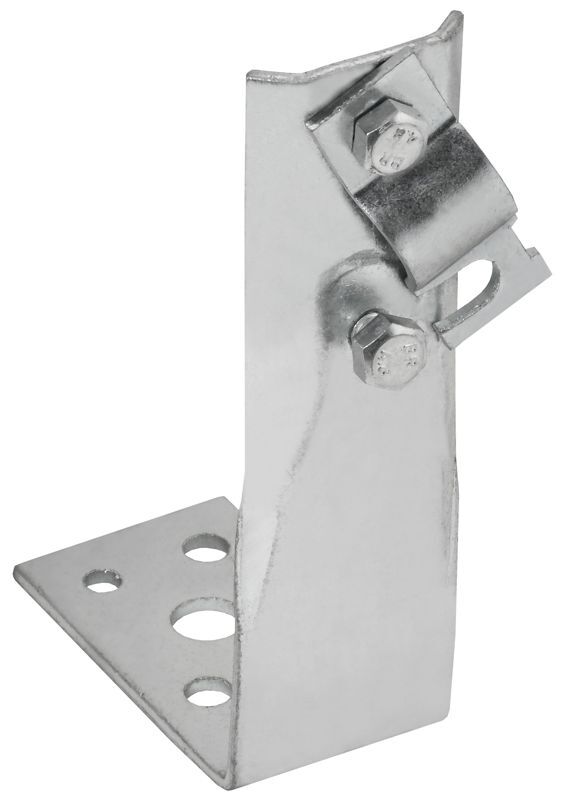 Держатель угловой с болтовым зажимом предназначен для монтажа проводника на горизонтальные, вертикальные или наклонные поверхности. Монтируется на поверхности при помощи саморезов. Зажим проводника происходит при помощи болтового соединения. Материал корпуса - сталь с гальваническим цинковым покрытием.