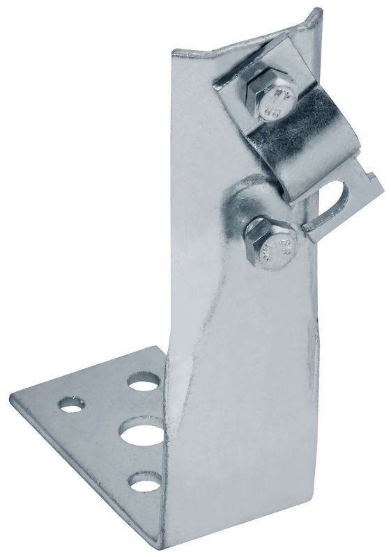 Держатель угловой с болтовым зажимом предназначен для монтажа проводника на горизонтальные, вертикальные или наклонные поверхности. Монтируется на поверхности при помощи саморезов. Зажим проводника происходит при помощи болтового соединения. Материал корпуса - сталь горячеоцинкованная.