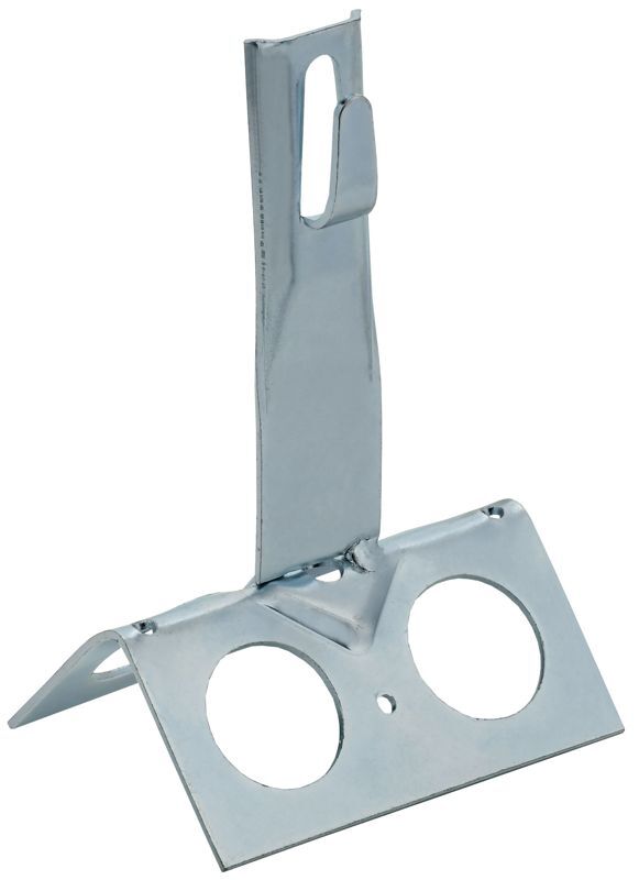 Держатель проводника круглого для конька с безболтовым зажимом широкий предназначен для закрепления прутка на коньке скатной кровли. Зажим проводника происходит путем загибания «язычка» держателя. На коньке крепится при помощи метизов. Материал корпуса - сталь горячеоцинкованная.