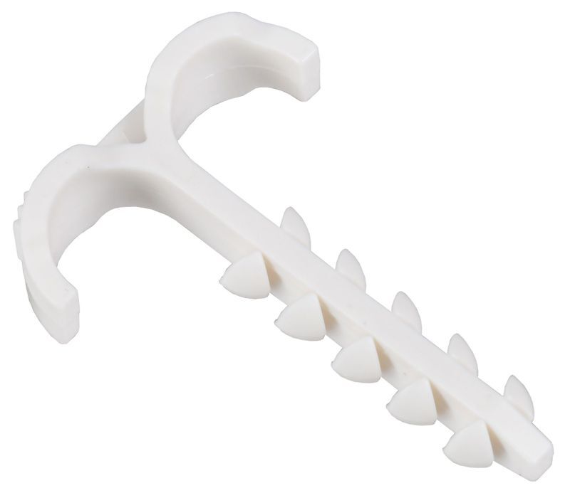 Дюбель-хомут Т-образный IEK сочетает в себе сразу два элемента: дюбель и скобу, что позволяет проложить 2 кабеля одновременно как вертикально, так и горизонтально. Одинаково эффективен при прокладке кабеля в кирпичных и блочных стенах, бетонных перекрытиях, потолках, полах и фундаментах.