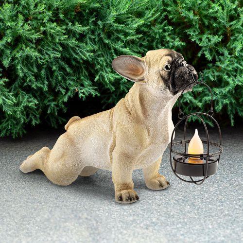 ЭРА ERASF22-04 (арт. Б0053353) - декоративный садовый светильник в виде забавного французского бульдога с ретрофонарём в зубах. Садовая фигура со встроенной светодиодной лампочкой выглядит очень реалистично и уютно подсвечивает сад вечером. Светильник садовый в форме собаки изготовлен из прочного полистоуна - искусственного камня с защитой от механических повреждений, осадков и ультрафиолета. Ландшафтный светильник с подсветкой отличается проработанными деталями, реалистичным дизайном и стойким окрашиванием в красивые естественные цвета. Тёплый цвет свечения LED-лампы настраивает на спокойный вечерний отдых. Встроенная солнечная батарея накапливает энергию в течение всего светового дня даже в пасмурную погоду.