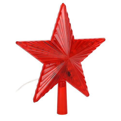 Светодиодная елочная верхушка ЭРА ENGEV-02 "Звезда" (арт. Б0056008) красного цвета, высота 21 см, подключается к стандартной электросети 220V. Новый взгляд от компании ЭРА на классическую советскую звезду, украшавшую елки во многих домах огромной страны. Современный вариант традиционной елочной верхушки ЭРА ENGEV-02 начинен светодиодами и чередует режимы свечения. В пятиконечной звезде с удобным креплением на елку располагается 31 яркий LED источник света последнего поколения. Светодиодная елочная звезда от ЭРА экономит электроэнергию, выглядит лаконично, подходит для праздничной ели в разных стилях - ретро, советский, минимализм, эклектика. Доступны 8 циклических режимов свечения. Длина провода - 2,5 метра. Макушка на елку ЭРА ENGEV-02 предназначена для использования внутри помещений. Верхушка "Звезда" эффектно светится в темноте ярким красным светом и отлично дополняет новогодние украшения, елочные игрушки, новогодний декор.