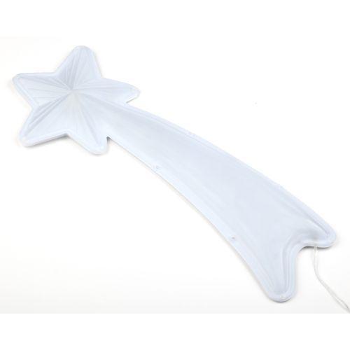 Новогодняя настенная светодиодная фигура ЭРА "Комета" (арт. Б0041937) для праздничного декора внутри и снаружи помещений. Защищена от влаги и пыли (IP44), отличается морозостойкостью. Работает от стандартной электросети 220 В, прозрачный провод практически не заметен. Изготовлена из ударопрочного пластика. LED-фигура представляет собой комету, похожа на падающую звезду. можно вешать как нравится: звездой влево или звездой вправо. Светится тёплым белым светом, который создаёт атмосферу уюта. Дизайн фигуры идеально подходит к зимним праздникам. Размеры фигуры: 55 х 4,2 х 25 см. В качестве источников света применены 15 ярких и экономичных светодиодов, которые не перегреваются даже при длительной работе без перерывов. Новогодняя LED-фигура - простой и быстрый способ создать праздничное настроение, украсить дом, офис, общественное пространство.