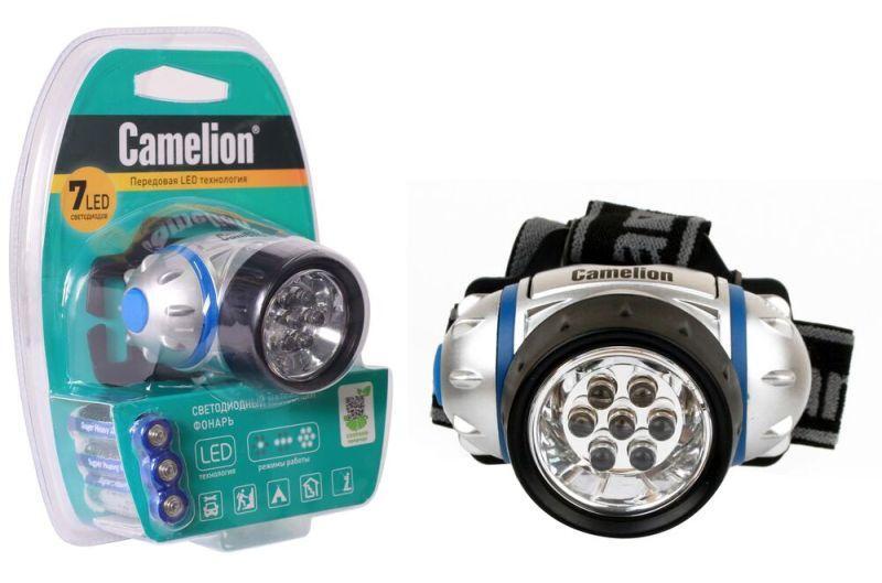 Фонарь Camelion электрический светодиодный налобный. Цвет корпуса: серебро + чёрный. Работает от 3 X AAA батареек (входят в комплект). Материал корпуса - пластик. Источник света - 7 светодиодов с рассеивающими линзами с цветовой температурой 6500К, со световым потоком 20 люмен. Дистанция освещения - до 20 метров. Три режима работы. Выключатель - трехпозиционный кнопочного типа. Время работы при использовании солевых батареек: 1 светодиод - до 70 часов, 3 светодиода - до 35 часов, 7 светодиодов - до 25 часов. Комплектация: фонарь, батарейки 3 x R03 Camelion Super Heavy Duty, эластичный ремешок для ношения на голове, поворотный отражатель, упаковка. Степень пыле-влаго-защиты IP44. Упаковка - двойной блистер. Максимальный линейный размер фонаря 6,8 см. Размер упаковки 7 см x 11 см x 15 см. Вес без упаковки 0,07 кг. Вес с упаковкой и батарейками 0,136 кг.