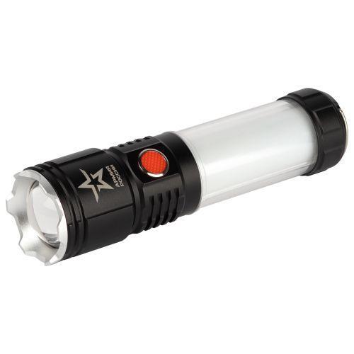 ЭРА Армия России "Тайфун" МА-703 - универсальный светодиодный аккумуляторный фонарь с лучом повышенной дальности, пятикратным зумом и встроенным светонакопителем. Его легко найти в темном помещении или в траве - после выключения сохраняет небольшое свечение. Серия фонарей ЭРА Армия России - совместный проект отечественного бренда ЭРА и АО "Военторг", действующего на основании лицензии Министерства обороны РФ. Фонарь оснащен емким литиевым аккумулятором (2200 мАч), одного заряда хватает на 7 часов непрерывной работы. Зарядное устройство в комплекте. Светодиодный луч повышенной дальности имеет возможность фокусировки. Пять режимов, удобных пользователю - от ближнего заливающего света (для того, чтобы хорошенько осмотреться в темноте) до длинного направленного луча (чтобы определиться с дальнейшим направлением пути). Ручка фонаря Армия России "Тайфун" светится белым и красным светом. Есть режим мерцания. ЭРА Армия России Тайфун выглядит отлично! Благодаря необычному фактурному дизайну корпуса и тщательной сборке его приятно держать в руках, а за счет продуманного функционала им приятно пользоваться. Фонарь украшает фирменная звезда Армии России - знак качества и особого статуса бренда. Аккуратная красная кнопка включения - дополнительный дизайнерский бонус.
