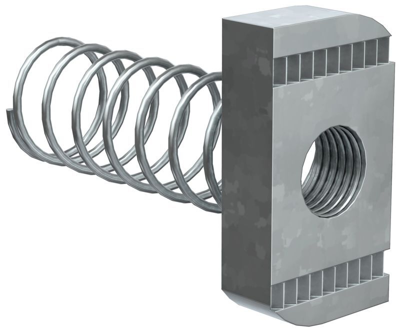 Гайка канальная с удлиненной пружиной предназначена для крепления элементов STRUT-системы между собой, а также кабельных лотков к STRUT-консолям. Используется с профилем сечения 41х41.
