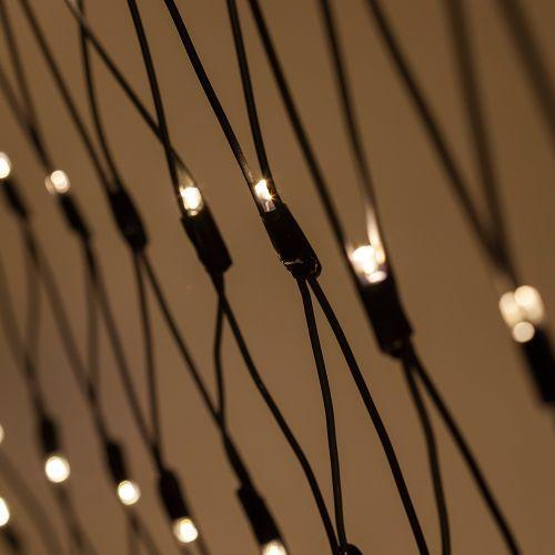 Уличная профессиональная гирлянда-сеть от торговой марки ЭРА. Новогодняя гирлянда-сеть ЭРА ERAPS-SK3 из прочного мягкого каучука со 150 яркими светодиодами. 10% источников света LED обладают эффектом мерцания, что создает волшебный праздничный свет для встречи Нового года и Рождества. Основаная цветовая температура гирлянды - уютное теплое свечение, при этом иллюминация теплого свечения мерцает холодными светодиодами. Это новое решение в ассортименте праздничных гирлянд. Новогоднее профессиональное освещение ЭРА – это LED-гирлянды высокой мощности с яркими светодиодами. Они дают возможность создавать длинные световые цепи и могут применяться в экстремальных погодных условиях, таких как ветер или сильные осадки. Все соединения имеют высокий класс защиты от влаги и пыли (IP65), каждая лампочка оснащена прозрачным влагозащитным колпачком. Габариты гирлянды уличной профессиональной: 1,5 м х 2 м.