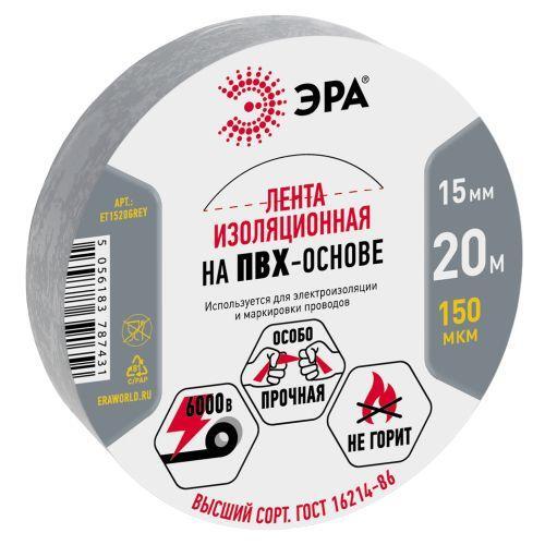 Изолента ПВХ 15ммх20м сер. ЭРА Б0039314