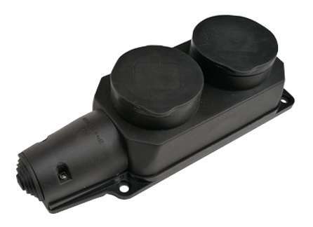 Колодка 2-м 16А IP44 с заземл. с защ. крышками каучук черн. IN HOME 4690612010274