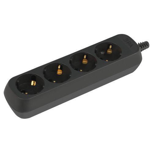 Колодка ЭРА KX-4e-B на 4 розетки, с заземлением, черная. Максимальная мощность - 16 А/3500 Вт. Для кабеля до 3х1,5мм2