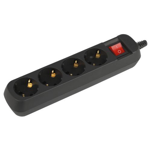 Колодка удлинителя 4-м с заземл. с выкл. черн. KX-4es-BЭра Б0061734