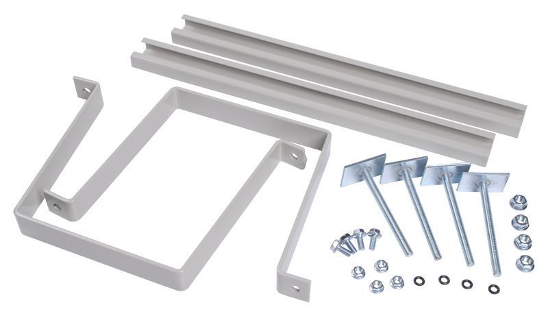 Комплект предназначен для монтажа металлических корпусов: - на железобетонных стойках типа СВ110 и СВ105 – крепление скобами; - на столбах круглого сечения диаметром до 350 мм – крепление монтажными полосами. Наибольшая масса закрепляемого электрощита – 80 кг.
