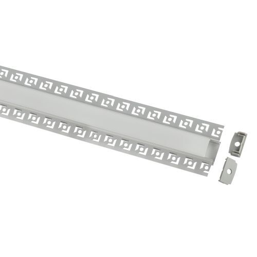 Комплект алюминиевого профиля под штукатурку предназначен для установки светодиодных лент с шириной подложки до 20мм. За счёт отведения тепла увеличивает срок службы светодиодной ленты. Анодированное покрытие обеспечивает устойчивость к воздействиям окружающей среды и легко окрашивается. Эстетично смотрится в интерьере, обеспечивает механическую защиту. В комплекте алюминиевый профиль 6114 61х14 мм 2,5 м, белый матовый экран из поликарбоната 2,5 м и 2 заглушки.
