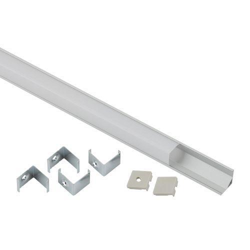 Комплект углового алюминиевого профиля предназначен для установки светодиодных лент с шириной подложки до 10 мм. За счёт отведения тепла увеличивает срок службы светодиодной ленты. Анодированное покрытие обеспечивает устойчивость к воздействиям окружающей среды и легко окрашивается. Эстетично смотрится в интерьере, обеспечивает механическую защиту. В комплекте угловой алюминиевый профиль CAB280 16х16 мм 2 м, белый матовый экран из поликарбоната 2 м, 4 крепления и 2 заглушки.