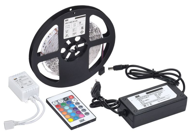 Комплект светодиодной подсветки "Сделай сам" DIY (лента LED 5м LSR-5050RGB60-14.4-IP20-12В + драйвер + контроллер) IEK 2LSR2-3-060-20-1-05-S2
