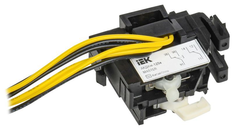 Контакт совмещенный АКДКм MASTER IEK совмещает функции дополнительного и аварийного контактов. Сигнализирует о положении силовых контактов и о срабатывании выключателя в аварийном режиме, а также при срабатывании независимого расцепителя, расцепителя минимального напряжения и в случае нажатия на кнопку «Тест».