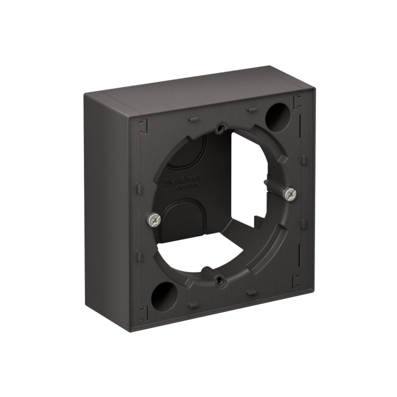 Коробка Systeme Electric (ранее Schneider Electric) серии AtlasDesign в цвете базальт наружного монтажа. Позволяет установить любую функцию скрытого монтажа на стену (как изделие открытого монтажа). Благодаря специальным соединителям, входящим в комплект изделия, несколько коробок можно соединить между собой. Лицевые детали из качественного ABS-пластика, устойчивого к царапинам и УФ-излучению.