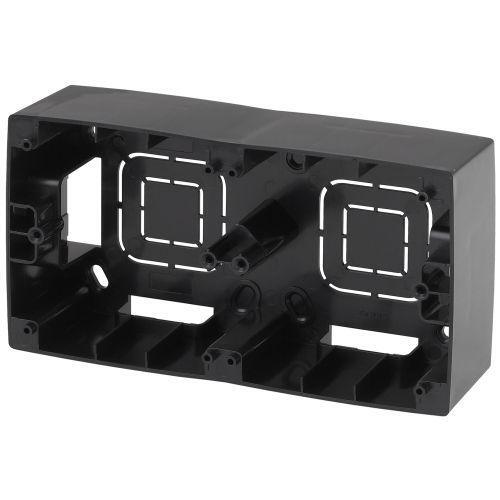 Коробка двойная для накладного монтажа механизмов серии Эра 12 цвет чёрный 12-6102-06. Сделана из поликарбоната. Применяется обеспечения накладного монтажа любого механизма серии Эра 12. Подходит только для механизмов серии Эра 12. Для полной сборки так же требуется рамка серии Эра 12.