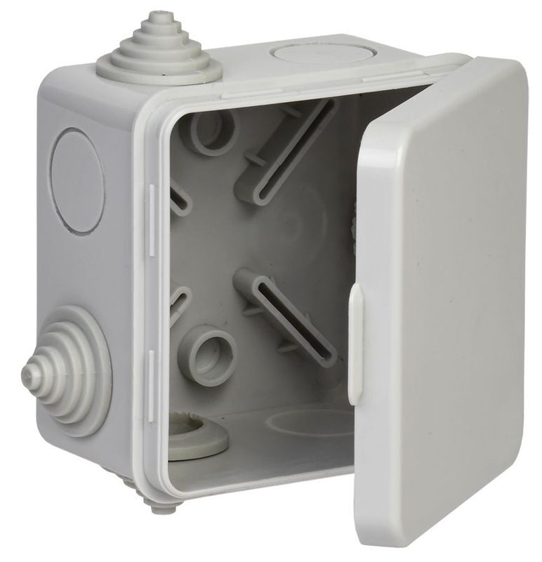 Монтажные коробки для открытого монтажа предназначены для разветвления проводов и кабелей, также для скрытия и дополнительной защиты мест коммутации. Используются как часть системы электрической канализации, состоящей из жестких и гофрированных труб. Коробки с повышенной степенью защиты могут быть использованы на открытом воздухе, а также во влажных и пыльных помещениях. Материал изготовления: полипропилен. Материал коробок является безгалогенным («HF» — halogen-free). Цвет: серый. Степень защиты: IP54. Температура эксплуатации: -25...+40. Количество вводов: 7 - D=20мм. Размер:80х80х50мм.