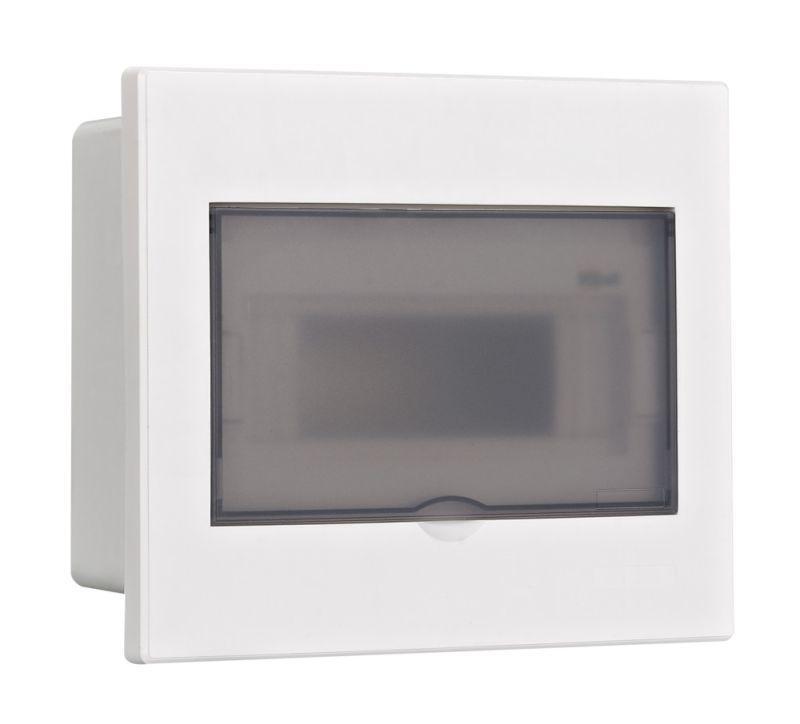 Корпус пластиковый встраиваемый для электрических аппаратов серии ЩРН-П Lite IP41 используется для установки модульной защитной аппаратуры и устройств управления. Цвет корпуса - RAL9003, прагматичный дизайн с прямыми линиями у фронтальной части и плоской дверцы цвета органического стекла. Фронтальные части корпуса, дверца, основание корпуса изготавливаются из негорючего ABS-пластика. Корпус имеет выламываемые отверстия для подвода проводников. Корпус является навесным, имеет 1 DIN-рейку и 9 модулей (18 мм) для установки устройств, держатель для шинок, шинки N и PE. Дверца фиксируется в верхнем положении. Щиток на 100% совместим с модульным оборудованием Dekraft и Systeme Electric.