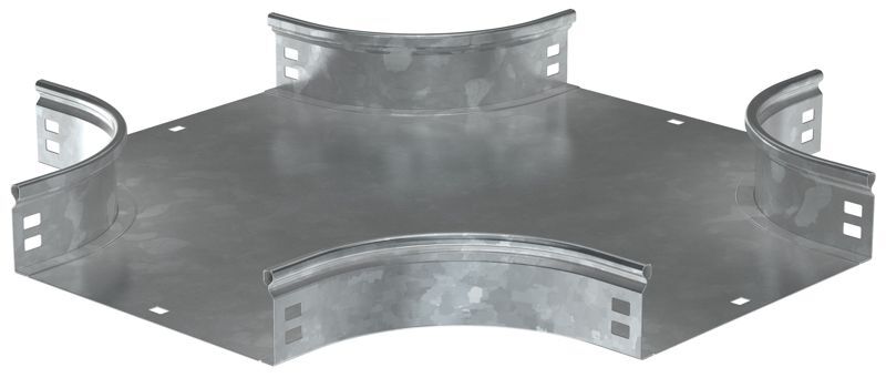 Крестовина плавная предназначена для организации X-образного ответвления кабельной трассы. Крышка аксессуара в комплект не входит. Аксессуар изготовлен из стали с цинковым покрытием, нанесенным погружением изделий в расплав цинка (защитный слой цинка не менее 55 мкм).