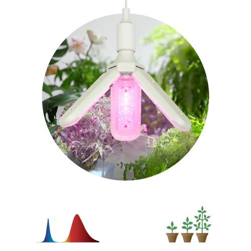 Эта удобная бытовая фитолампа-трансформер красно-синего спектра по своей мощности и эффективности не уступает передовым решениям в освещении растений. Обеспечивает качественную досветку 1,5 кв м рассады. Поворотные лепестки позволяют быстро и без усилий изменить направление и интенсивность освещения растений. Эффектный внешний вид и максимальный комфорт в применении. На каждом лепестке по 27 светодиодов. Каждый лепесток поворачивается на 180 градусов. Индивидуальное регулирование наклона и направления светодиодных "лепестков" дает возможность создать множество уникальных сценариев подсветки растений. Габариты фитолампы: 350 х 295 х 90 мм. Фотонный поток: 43,2 мкмоль/с. При минимальных затратах электроэнергии вы получаете такое количество света, которого точно хватит для быстрого роста и активного набора массы рассады. Наличие инфракрасных светодиодов предотвращает вытягивание рассады. Блок питания и светодиоды расположены отдельно. LED-элементы размещены на алюминиевых платах. Каждая плата равномерно распределяет тепло, светодиоды не перегреваются и светят гарантированно 30 000 часов. Прочный негорючий корпус базового белого цвета. Блок питания оснащён варистором, который защищает лампу от высокочастотных помех в сети. Рекомендованная высота от лампы до листьев от 15 до 75 см. Прозрачный рассеиватель и белый глянцевый корпус лампы позволили ее сделать максимально энергоэффективной. Лампа клевер ЭРА FITO-24W-RB-E27-FOLD на первый взгляд кажется странной и непривычной, но в лепестковой лампе за счет распределения печатных плат на большой площади проблема с отводом тепла с диодов решается намного легче и дешевле, чем в радиаторных лампах.