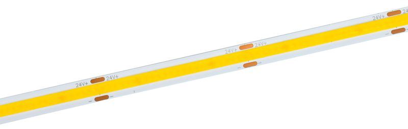 Низковольтная светодиодная лента 24 В COB с количеством 480 светодиодов на 1 м торговой марки IEK позволяет создавать декоративное освещение мебели, ниш, барных стоек, окон и витрин, а также подсветку деталей интерьера: многоуровневых и подвесных потолков, карнизов, плинтусов. В отдельных случаях используется в качестве основного освещения. Светодиодные системы подсветки включают в себя источник света светодиодную ленту и принадлежности к ней (источники питания – драйверы LED ИПСН, контроллеры управления и коннекторы). Все необходимые принадлежности представлены в ассортименте IEK. Технология COB (Chip On Board - светодиоды расположены прямо на плате и защищены единым слоем люминофора) позволяет размещать значительно больше светодиодов, чем на стандартных светодиодных лентах. Благодаря этому создается эффект свечения «единой линией», а сами светодиоды практически не видны поштучно.