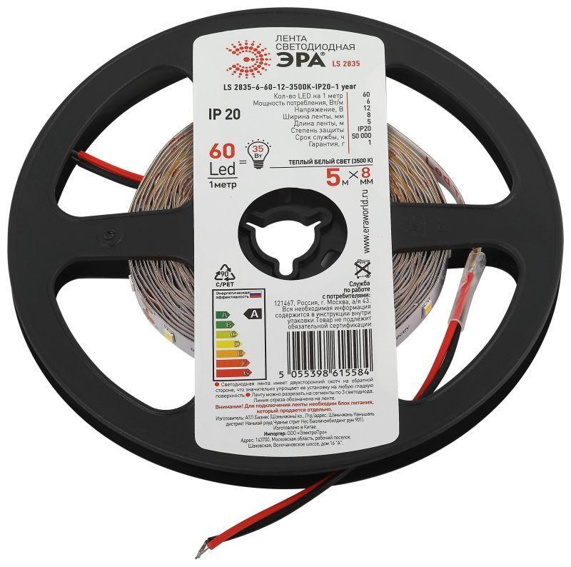 Лента светодиодная LS2835 6-60-12-3500K-IP20-1 year-5m нейтр. бел. (уп.5м) Эра Б0053974