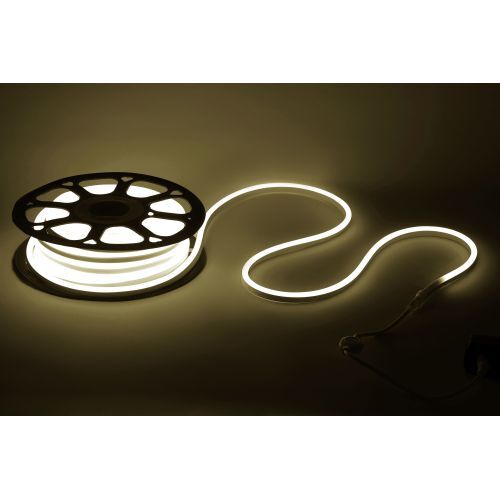 ЭРА Светодиодная неоновая лента N2835-120-IP67-220V-20m-2700 (1/60) со степенью защиты от пыли и влаги IP67 - современный способ создания оригинального освещения помещений и зданий, как внутри, так и снаружи.. Cветодиодная лента устанавливается при помощи крепежей (монтажных скоб), монтаж на двусторонний скотч исключён. Торцы ленты необходимо закрывать заглушками. Гибкая LED-лента ЭРА позволяет устанавливать подсветку на уличные конструкции для освещения и привлечения внимания к объектам. Лента неоновая от торговой марки ЭРА поставляется в удобных катушках. Рабочее напряжение ленты составляет 220В, а мощность равна 7 Вт/м. Светодиодная лента обладает световым потоком 145 Лм/м, и цветом свечения - теплый белый (2700 K) ВНИМАНИЕ: - светодиодную ленту с напряжением 220В допустимо подключать последовательно отрезками не более 100 м. - во избежание выхода из строя не допускается длительная работа ленты в смотанном виде