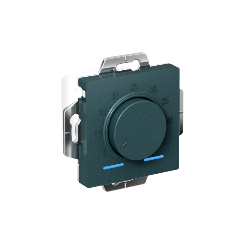 Термостат Systeme Electric (ранее Schneider Electric) серии AtlasDesign электронный для теплого пола, с датчиком, 10 A в цвете изумруд обеспечит комфортное регулирование температуры пола и идеально впишется в интерьер помещений. Ном. напряжение: 230 В. Частота: 50 Гц. Электронная защита от перенапряжения. Диапазон регулирования: от +5 до +45 °С. Датчик температуры пола в комплекте (кабель 2,5 м), тип NTC. Степень защиты от пыли и влаги: IP20.
