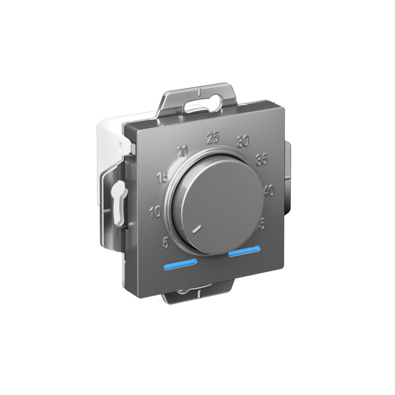 Термостат Systeme Electric (ранее Schneider Electric) серии AtlasDesign электронный для теплого пола, с датчиком, 10 A в цвете сталь обеспечит комфортное регулирование температуры пола и идеально впишется в интерьер помещений. Ном. напряжение: 230 В. Частота: 50 Гц. Электронная защита от перенапряжения. Диапазон регулирования: от +5 до +45 °С. Датчик температуры пола в комплекте (кабель 2,5 м), тип NTC. Степень защиты от пыли и влаги: IP20.
