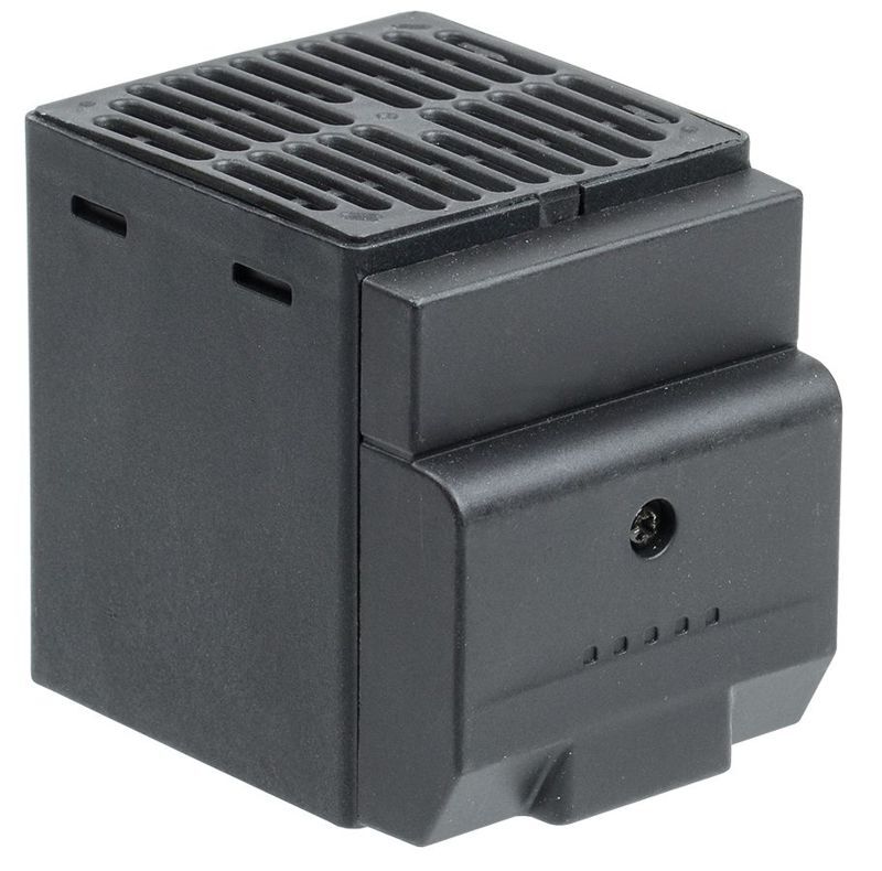 Обогреватель на DIN-рейку предназначен для нагрева воздуха внутри электротехнических шкафов. Создаваемый конвекционных воздушный поток предотвращает образование областей с низкой температурой и защищает электрические компоненты от образования конденсата и замерзании при перепадах температуры, а также коррозии металлических элементов активного оборудования. Наличие калорифера с саморегулированием обеспечивает естественную циркуляцию нагретого воздуха внутри шкафа и позволяет избежать перегрева. При установке в паре с терморегулятором используется для поддержания требуемой температуры внутри шкафа и организации стабильной работы установленного оборудования. Может быть использован в электрооборудовании переменного тока частотой 50 Гц и напряжением до 230 В. Динамическая система нагрева воздуха максимально эффективна при длительных режимах работы. Подключение посредством зажимов делает монтаж максимально простым и быстрым.