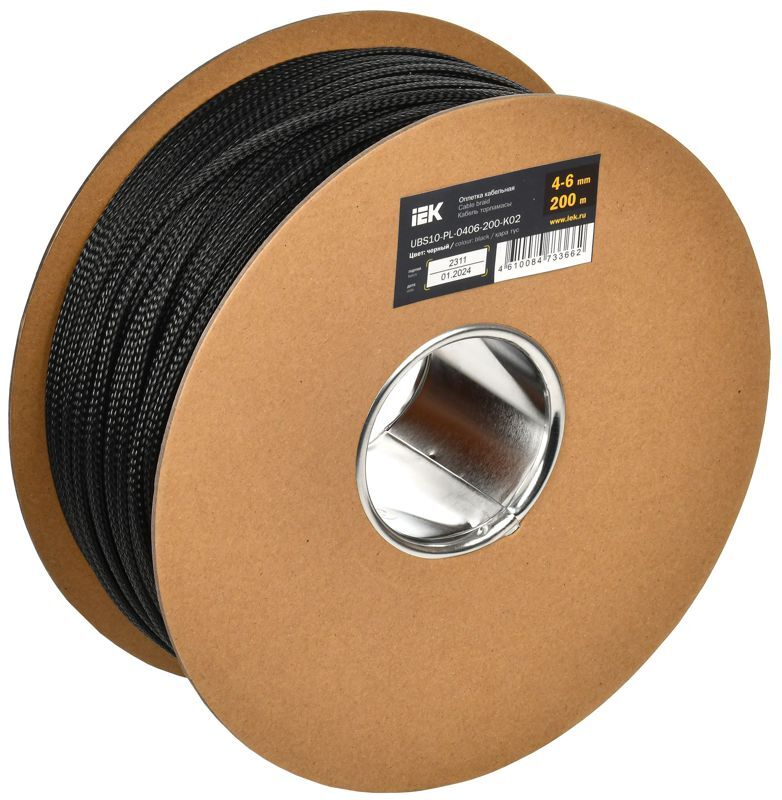 Оплетка кабельная 4-6мм полиэстер (уп.200м) черн. IEK UBS10-PL-0406-200-K02
