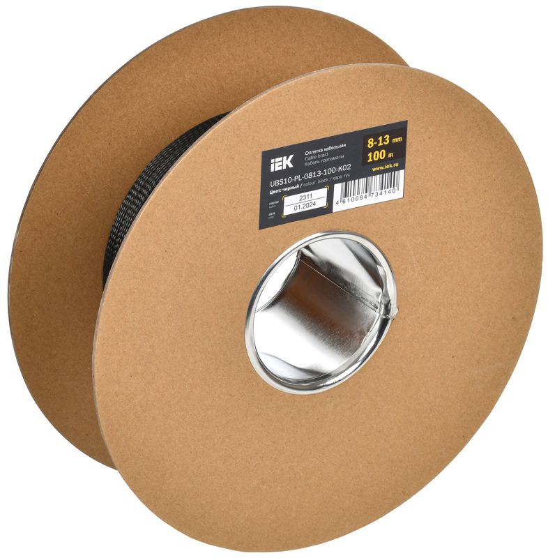 Оплетка кабельная 8-13мм полиэстер (уп.100м) черн. IEK UBS10-PL-0813-100-K02