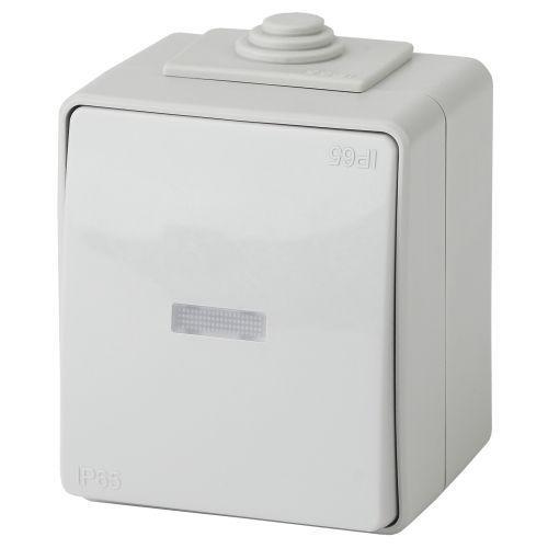 Переключатель 1-кл. ОП Эра Эксперт 10А IP65 11-1610-03 250В 10AX с подсветкой сер. Эра Б0035981