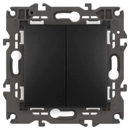 Выключатель 2-клавишный проходной Эра Elegance антрацит 14-1106-05. Оснащён автоматическими клеммами для надёжной фиксации жил кабеля в механизме. Рамки приобретаются отдельно.