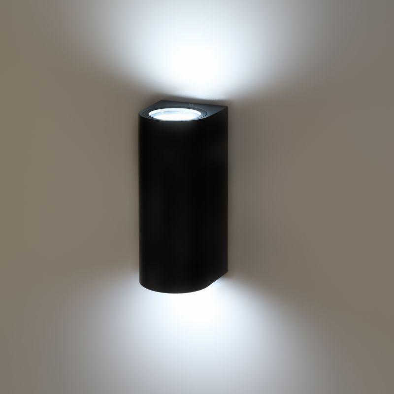 Светильник декоративный настенный WL39 BK направленного света подчёркивает структуру материалов стен, создает интересный световой рисунок. Можно использовать как по отдельности, так создавать целые системы. Предназначен для подсветки фасадов зданий, беседок, зон барбекю, стен в помещениях с повышенной влажностью и других местах. Нейтральный свет оптимален как для дома, так и для общественных пространств. Цоколь для источника света GU10, напряжение питания ~230В 50/60Гц, материал металл, полимер, цвет светильника черный, размер 160*68*78мм, максимальная мощность лампы 2*35Вт, степень защиты IP54