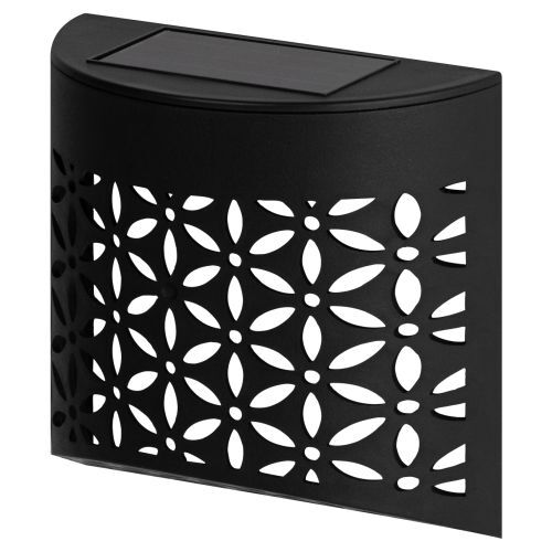 Настенный светильник ЭРА ERAFS024-01 "Лепестки" на солнечной батарее с перфорированным орнаментом в виде цветочных лепестков. Беспроводная подсветка проецирует на фасад красивый световой рисунок. LED-светильник заряжается в течение светового дня и автоматически включается с наступлением темноты. Габариты: 1 1х 11 х 5 см. Солнечная панель расположена в верхней части фасадного светильника. При полном заряде проработает в темноте до 8 часов, создав вечерний уют на загородном участке или балконе. Быстрый и простой монтаж. Фасадные светильники ЭРА ERAFS024-01 изготовлены из металла с нержавеющим покрытием и высокопрочного пластика. Эффектно смотрятся в составе группы из нескольких штук.
