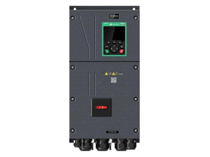 Преобразователь частоты SystemeVar 900 (STV900). Номинальная мощность: 15 кВт (G-тип: перегрузочная способность: 150% в течение 60с, 180% в течение 10с, 200% в течение 1с. Несущая частота ШИМ: 4 кГц), 18,5 кВт (P-тип: 120% в течение 60с. Несущая частота ШИМ: 2 кГц). Номинальный ток: 32 А (G-тип) / 38 А (P-тип). Питающее напряжение 3Ф 380В (-15%) ~ 440В (+10%). Степень защиты IP55. Встроенный тормозной прерыватель. Встроенный-ЭМС фильтр (Класс С3, согл. EN 61800-3). Коммуникационный протокол: Modbus RTU. Кол-во входов/выходов: 6DI, 2AI, 2DO, 2RO, 1AO. Степень защиты: IP55. Покрытие плат (Класс 3С2, согл. EN 60721-3-3). Температура окружающей среды: от -10°C до +50°C (до +40°C без ухудшения номинальных характеристик). Скалярное управление, векторное управление (без/c обратной связи по скорости). Работа как с асинхронными, так и с синхронными двигателями. 3 слота для расширения функциональности (возможность использования дополнительных коммуникационных карт, карт расширения входов/выходов, карт энкодеров, карты ПЛК, карты внешнего питания цепей управления 24V DC). Встроенная функция безопасности STO (Safe torque off), SIL2. Встроенный рубильник (для отключения сетевого питания). Габаритные размеры (ДхШхВ), мм: 223х289,4х475. Вес: 13 кг.