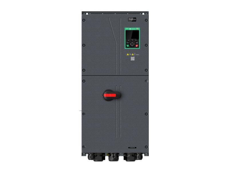 Преобразователь частоты SystemeVar 900 (STV900). Номинальная мощность: 55 кВт (G-тип: перегрузочная способность: 150% в течение 60с, 180% в течение 10с, 200% в течение 1с. Несущая частота ШИМ: 4 кГц), 75 кВт (P-тип: 120% в течение 60с. Несущая частота ШИМ: 2 кГц). Номинальный ток: 115 А (G-тип) / 150 А (P-тип). Питающее напряжение 3Ф 380В (-15%) ~ 440В (+10%). Степень защиты IP55. Встроенный DC-реактор. Встроенный-ЭМС фильтр (Класс С3, согл. EN 61800-3). Коммуникационный протокол: Modbus RTU. Кол-во входов/выходов: 6DI, 2AI, 2DO, 2RO, 1AO. Степень защиты: IP55. Покрытие плат (Класс 3С2, согл. EN 60721-3-3). Температура окружающей среды: от -10°C до +50°C (до +40°C без ухудшения номинальных характеристик). Скалярное управление, векторное управление (без/c обратной связи по скорости). Работа как с асинхронными, так и с синхронными двигателями. 3 слота для расширения функциональности (возможность использования дополнительных коммуникационных карт, карт расширения входов/выходов, карт энкодеров, карты ПЛК, карты внешнего питания цепей управления 24V DC). Встроенная функция безопасности STO (Safe torque off), SIL2. Встроенный рубильник (для отключения сетевого питания). Габаритные размеры (ДхШхВ), мм: 338х336,7х800. Вес: 48,2 кг.