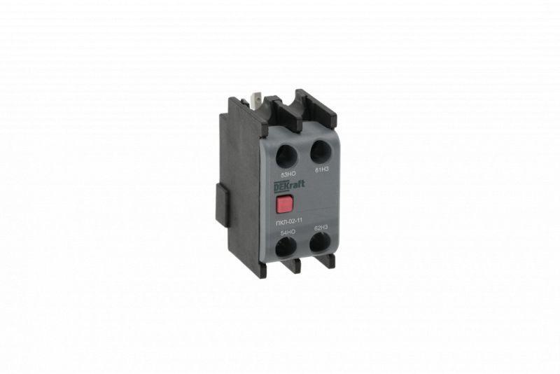 Приставка контактная серии ПКЛ-02-02 для контакторов КМ-102 Dekraft; кол-во контактов - 2НЗ; ном.ток 10 А; ном.напряжение до 690 В; установка с лицевой стороны; степень защиты IP20. Приставки контактные предназначены для увеличения количества вспомогательных контактов контактора. Контактные приставки механически соединяются с контакторами и фиксируются при помощи защелки. Приставка подходит для использования с контакторами других производителей.